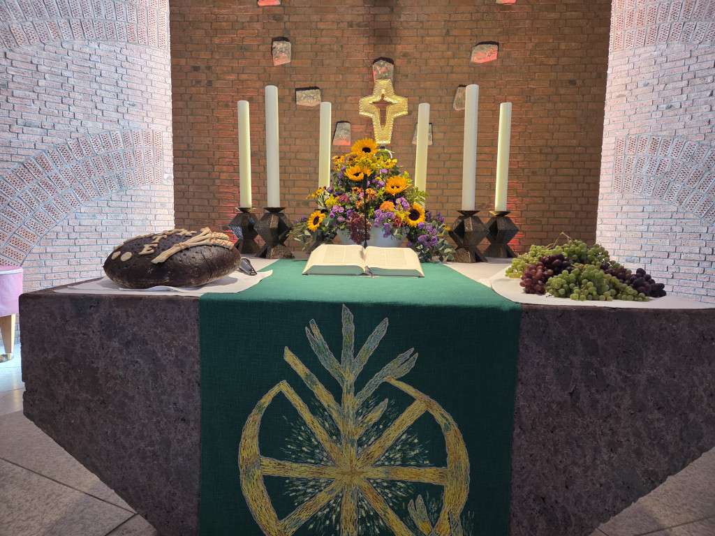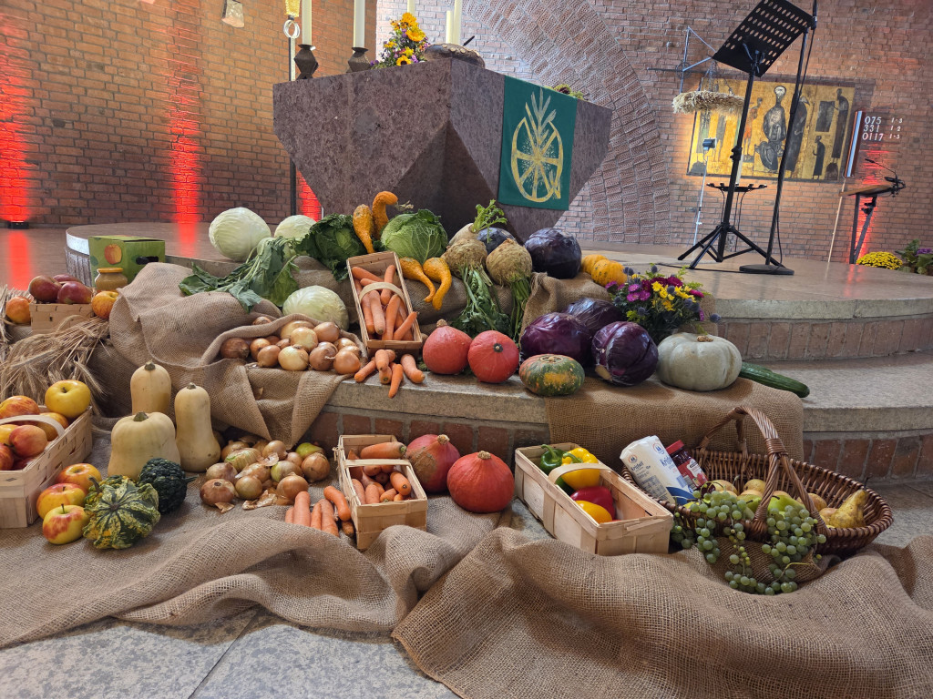 Am 5. Oktober gab es in Reichelsdorf Grund zum Feiern: das Erntedankfest und verschiedene Jubiläen in der Philippusgemeinde. Die Philippuskirche wurde 60 Jahre, der Posaunenchor 90, der Seniorenclub 50 und die Bücherei 60 Jahre alt. Wir begannen unser Gemeindefest mit einem Gottesdienst, der die Dankbarkeit für die Schätze der Philippusgemeinde zum Thema hatte. Zu Beginn sang der Chor und mehr als 50 Kinder schoben gemeinsam den Wagen mit den Erntegaben zum Altar. Während die Erwachsenen danach in der Kirche blieben, beschäftigten sich die Kinder an verschiedenen kreativen, musikalischen und bewegten Stationen draußen und drinnen mit dem Thema Erntedank.