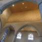 Überall bestimmt helles Holz und Holzgeflecht den Gesamteindruck. Aufgefallen ist uns als katholische und lutherische Christen sogleich die Schlichtheit des Kircheninneren, das ganz ohne Schmuck oder Kunstwerke auskommt. Die evang.reformierte Kirche verzichtet auf alles, was den Gottesdienstbesucher ablenken könnte. Begründet wird dies mit dem Bilderverbot aus der 10-Gebote –Reihe.